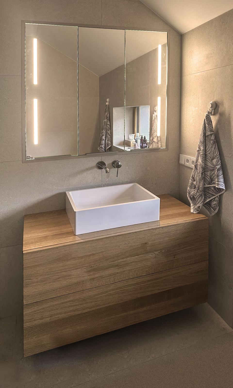 Koupelnový nábytek je velice náchylný na poškození vysokou vlhkostí, která se v každé koupelně vyskytuje, proto je důležité, aby byl vyroben z kvalitních materiálů s perfektní povrchovou úpravou, která vysoké vlhkosti bez problémů odolá dlouhá léta. My pro Vás takový koupelnový nábytek vyrobíme přesně podle Vašich přání a představ. Protože se jedná o výrobu koupelnového nábytku na zakázku nejste ničím omezeni.