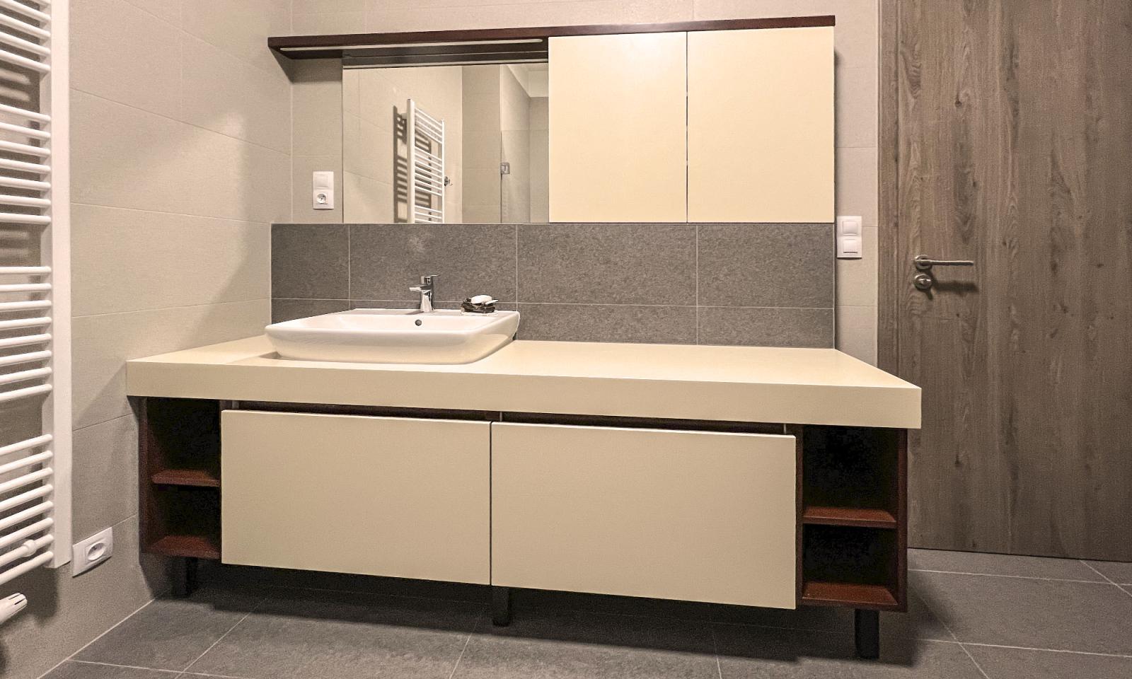 K výrobě koupelnového nábytku můžeme použít například sklo, masivní dřevo nebo umělý kámen technistone popřípadě kámen přírodní. Samozřejmostí je také dodání umyvadla nebo baterie dle Vašeho výběru. Tak jako všechny naše výrobky i koupelnový nábytek montujeme ZDARMA .